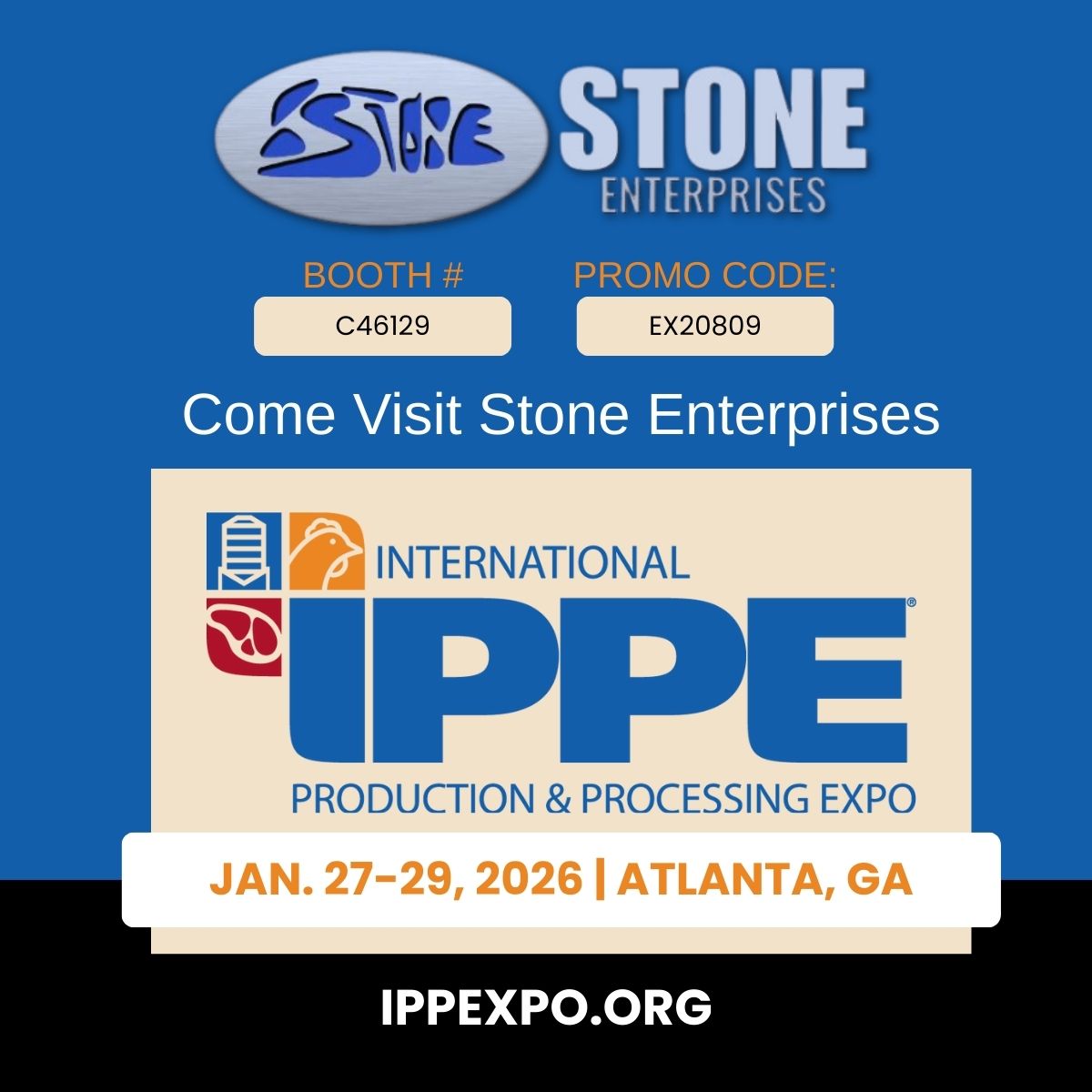 Come visit Stone Enterprises at the IPPE Trade show booth C46129.